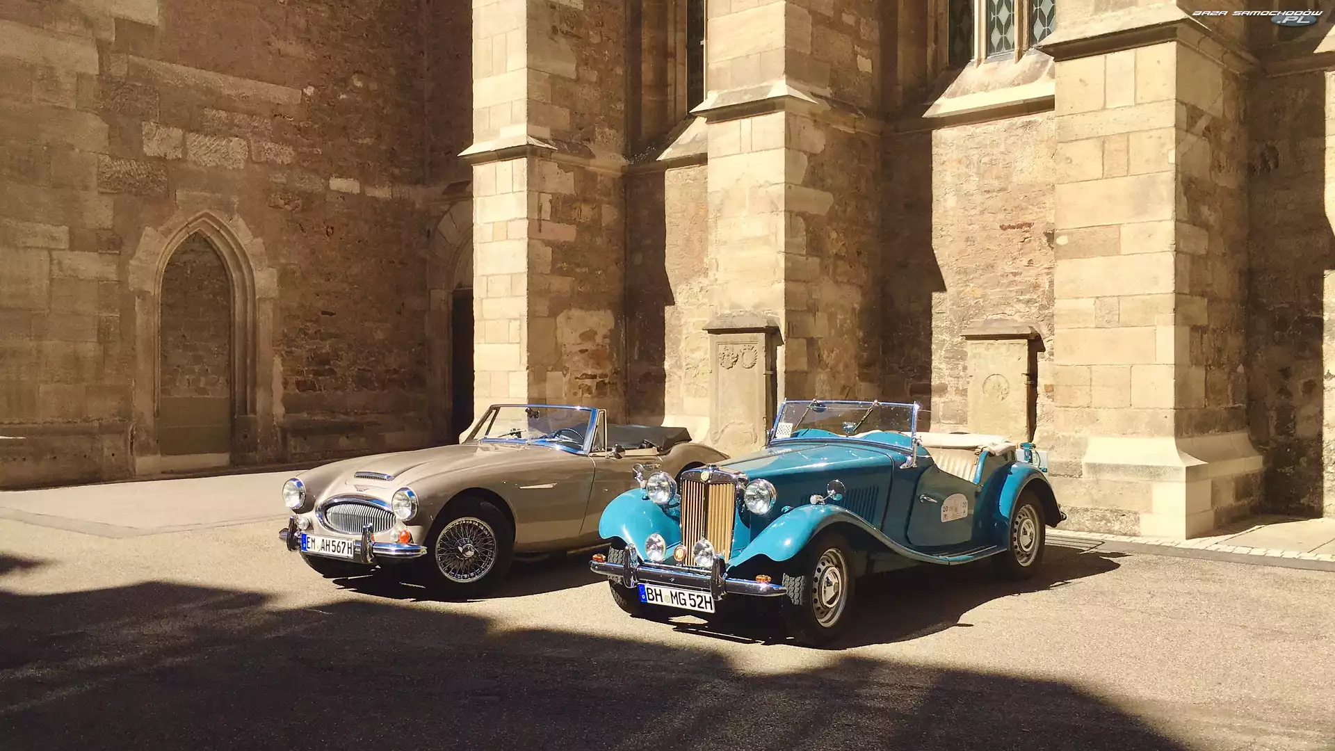 Samochody, Dwa, MG TD Midget, Niebieski, Zabytkowe, Austin-Healey- Zdjęcia samochodów