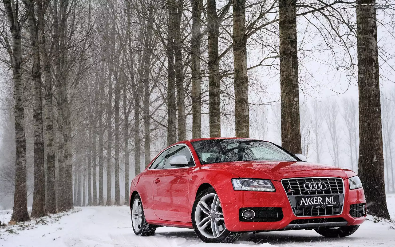 Śnieg, Droga, Audi S5, Czerwone, Las- Zdjęcia samochodów