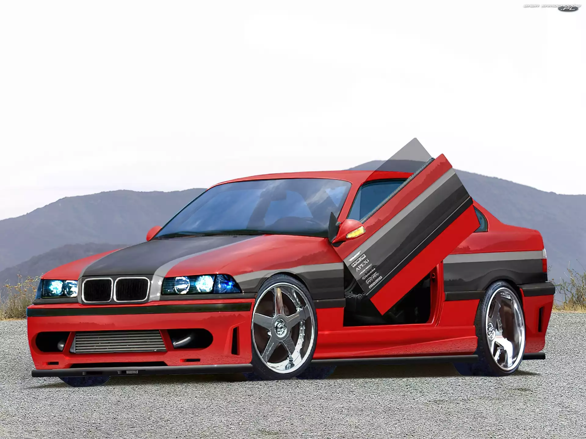 Samochód: E36, BMW 3, Tuning, Czerwony, Czarny